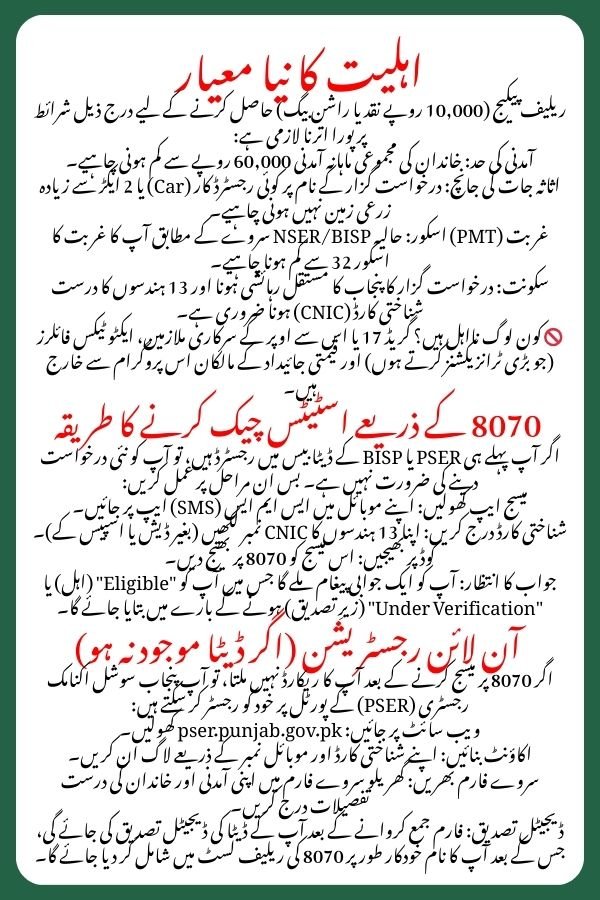 If you are already registered in the PSER or BISP database, you don’t need a new application. Follow these steps to check your eligibility: